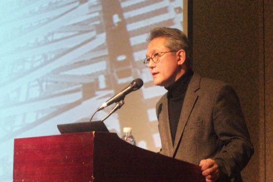 한국강구조학회 오영석 교수(대전대학교)가 8일 강재이용 기술 발표회에서 건축구조용 H형강인 SHN400의 구조 성능에 대한 소개를 가지고 우수한 내진 성능을 가지고 있음을 입증했다.