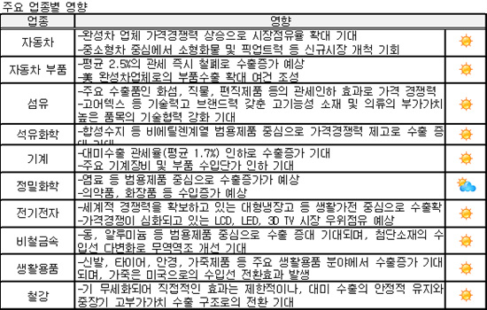 관련기사 <한-미 FTA>철강·비철금속, 수출 증대·가격경쟁력 확보 기대 <표><한-미 FTA> 상품양허 유형별 주요품목 <한-미 FTA>철강·비철금속, 수출 증대·가격경쟁력 확보 기대 벤츠, 한국부품 늘리나? 외교부, "한-미 FTA 차질없이 시행할 것" 미국 대형 바이어, ‘반갑다! 한-미 FTA’ 전경련, 한-미 FTA 비준 처리 환영 대한상의, 한-미 FTA 비준안 본회의 통과 환영 철강업계 "韓·美 FTA로 수요산업 수출 증대 효과 기대" 韓-美 FTA 비준안 국회 통과 KDI, 내년 경제성장률 3.8% 전망 10월 자동차 수출, 13개월 연속 전년比 증가세 유지 韓․EU FTA, 자동차 수출 전년비 91%↑ 나라 팔아먹는 매국노, 일벌백계해야 수입産 아연, 근 5년래 '최고' 中産 와이어로프, 한국산 둔갑해 수출하다 '덜미' 서울시, FTA활용 실무교육 실시