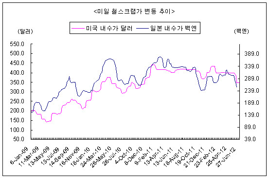 6월 4주 미국의 국내 철스크랩 가격이 톤당 347.50달러에서 보합을 기록했다.