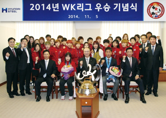 현대제철 여자축구단이 2014년 WK리그에서 우승을 차지하며 2년 연속 챔피언 자리에 올랐다.