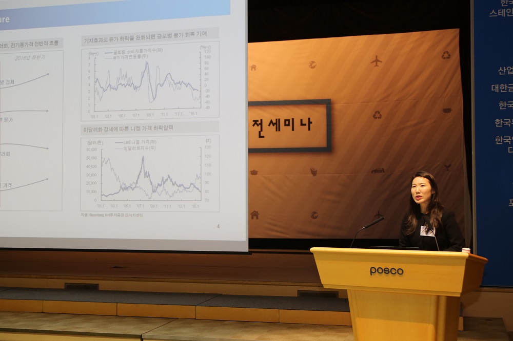 NH 투자증권 강유진 연구원은 ‘니켈 원자재 시장동향 및 전망’에 대해 발표하면서 “STS 중요 부자재인 니켈가격은 중국의 경기 둔화, STS 생산 부진 등으로 2015년 톤당 1만달러 아래로 떨어져 6년래 최저치를 기록했다”고 전했다.
