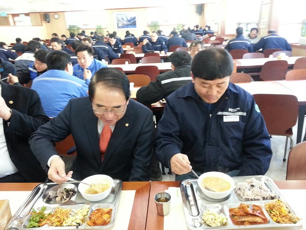 박 의원은 이 자리에서 이형철 공장장, 김용수 노조위원장을 비롯한 근로자 400여명과 일일이 손을 잡은 뒤 오찬을 함께했다.
