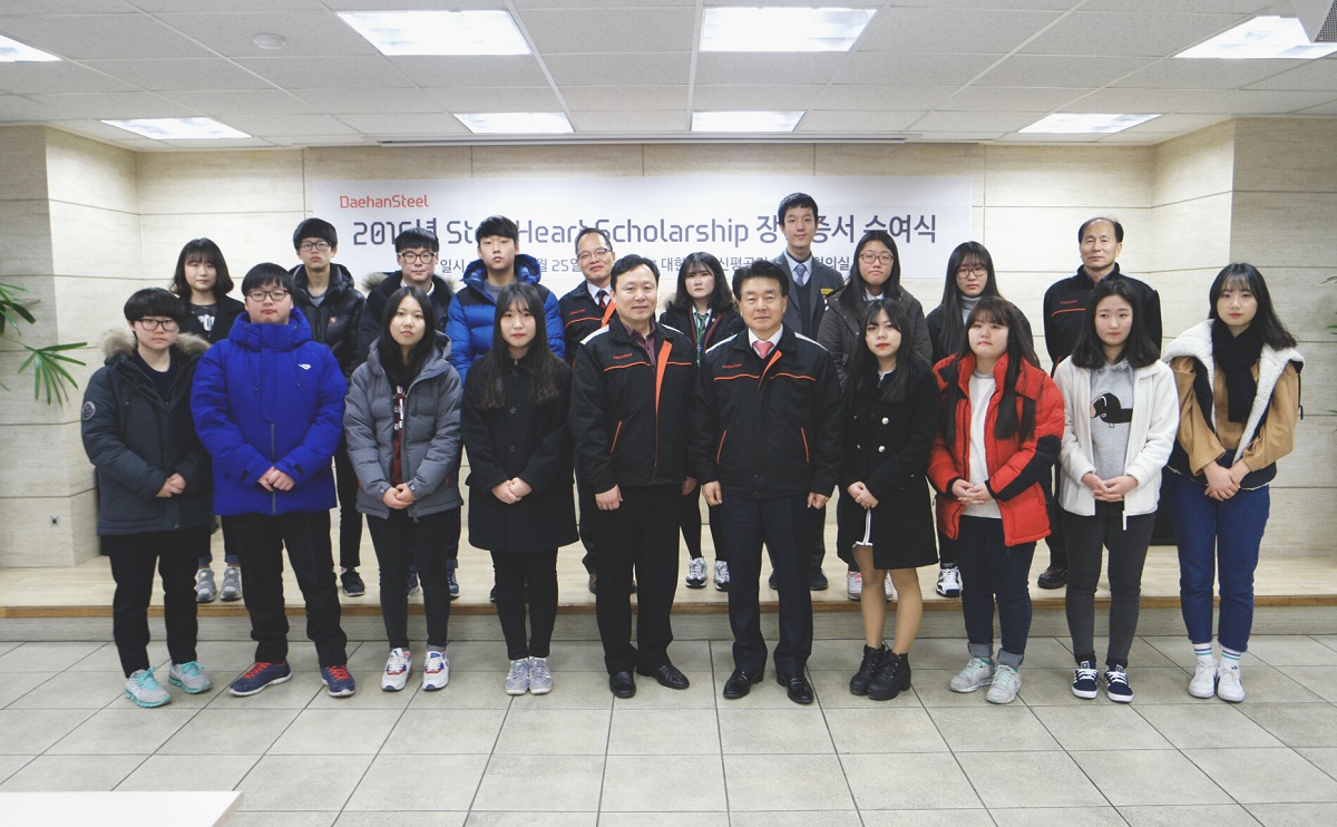 대한제강(대표 오치훈) 신평공장은 지난달 25일 ‘2016 SteelHeart Scholarship 장학증서 수여식’을 개최했다고 최근 밝혔다. 이번 수여식에서는 부산시 강서구, 사하구에서 선발된 고등학생들이 장학증서를 받았다.