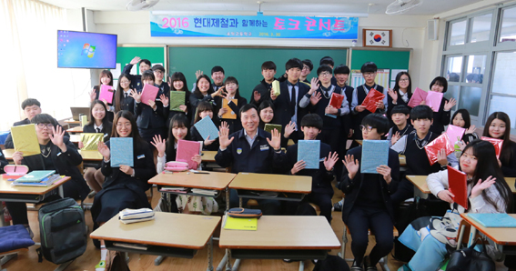 현대제철 당진제철소장인 오명석 부사장은 지난 30일 송악중학교를 방문했다. '2016 일일특강 릴레이' 올해 첫 강사로 나섰기 때문이다.