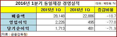 동일제강, 올 1분기 매출·영업이익 동반 감소