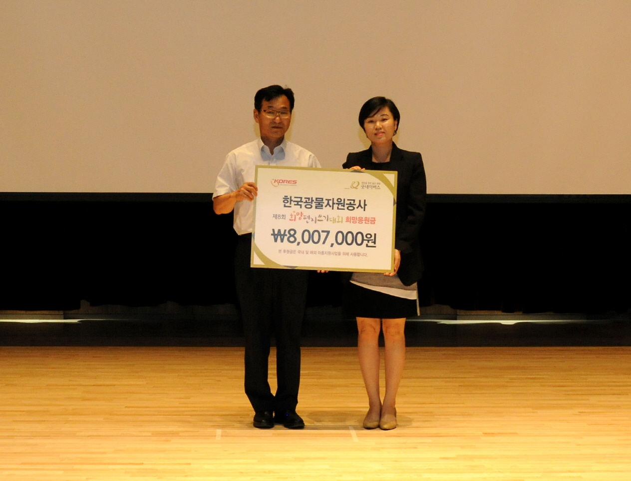 굿네이버스와 글로벌 나눔협약을 맺고 있는 광물자원공사는 지난 4개월 동안 희망편지 쓰기대회를 통해 조성한 800만7,000원을 굿네이버스측에 전달했다.