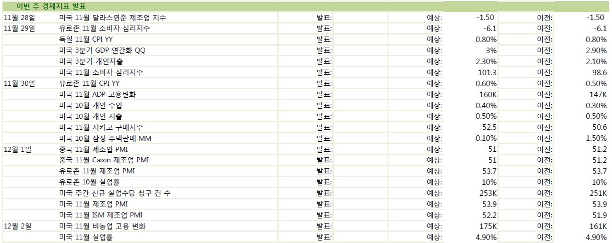이번 주 경제 지표 발표…美 11월 소비자 심리지수 등