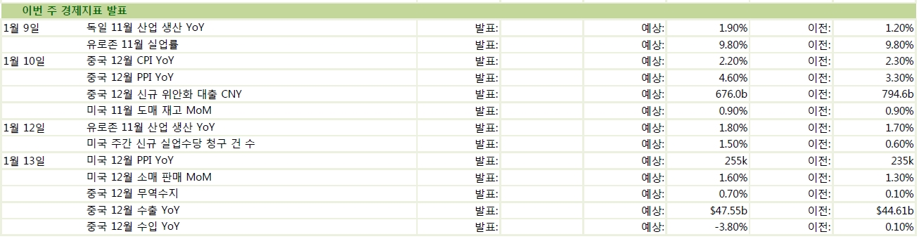 이번 주 경제 지표 발표…13일 中 12월 무역수지 등