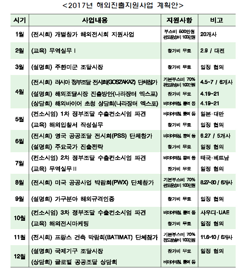 ‘2017년 해외 진출 지원사업 계획안’