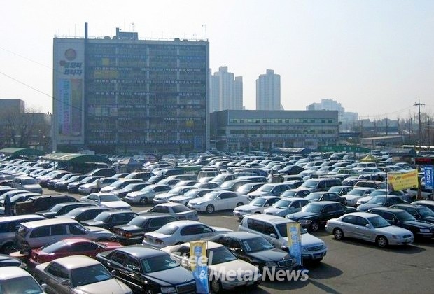 ▲경기침체가 장기화 되면서 지난해 신차 생산은 줄고, 중고차 거래는 사상 최고를 기록했다. 서울 장한평 중고차 시장. 정수남 기자