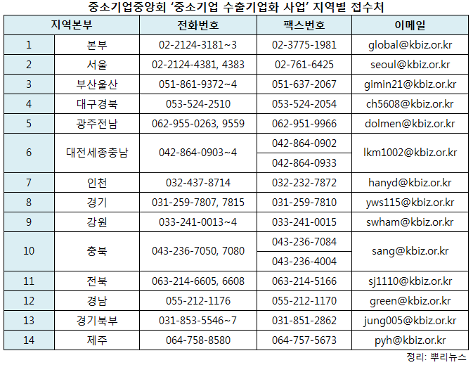 중소기업중앙회는 국내 내수기업 및 초보수출기업들의 해외 판로 개척·수출 확대를 지원하기 위해 ‘중소기업 수출기업화 사업’을 실시한다고 21일 밝혔다.