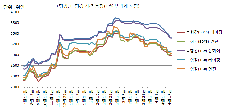 | 단위 : 톤/위안, 17% 부과세 포함 | |||||||