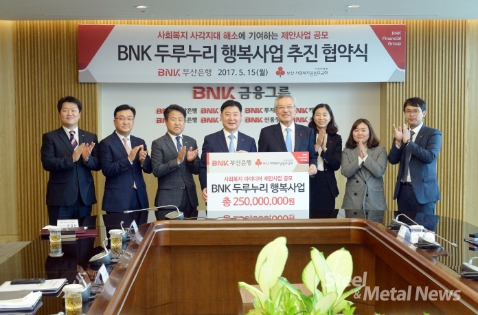 포스코 가공센터 세운철강 신정택 회장이 'BNK두루누리 행복사업 공모' 업무 협약식에 참석했다.
