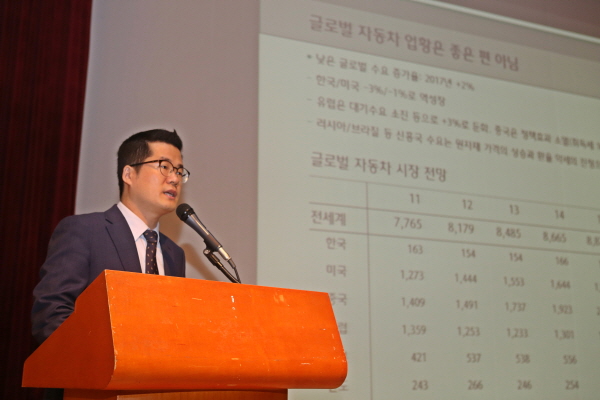 송선재 애널리스트는 이날 주제발표에서 ‘저성장과 경쟁심화-평탄하지 않은길’을 주제로 국내 자동차 산업의 쉽지 않은 하반기를 전망했다.