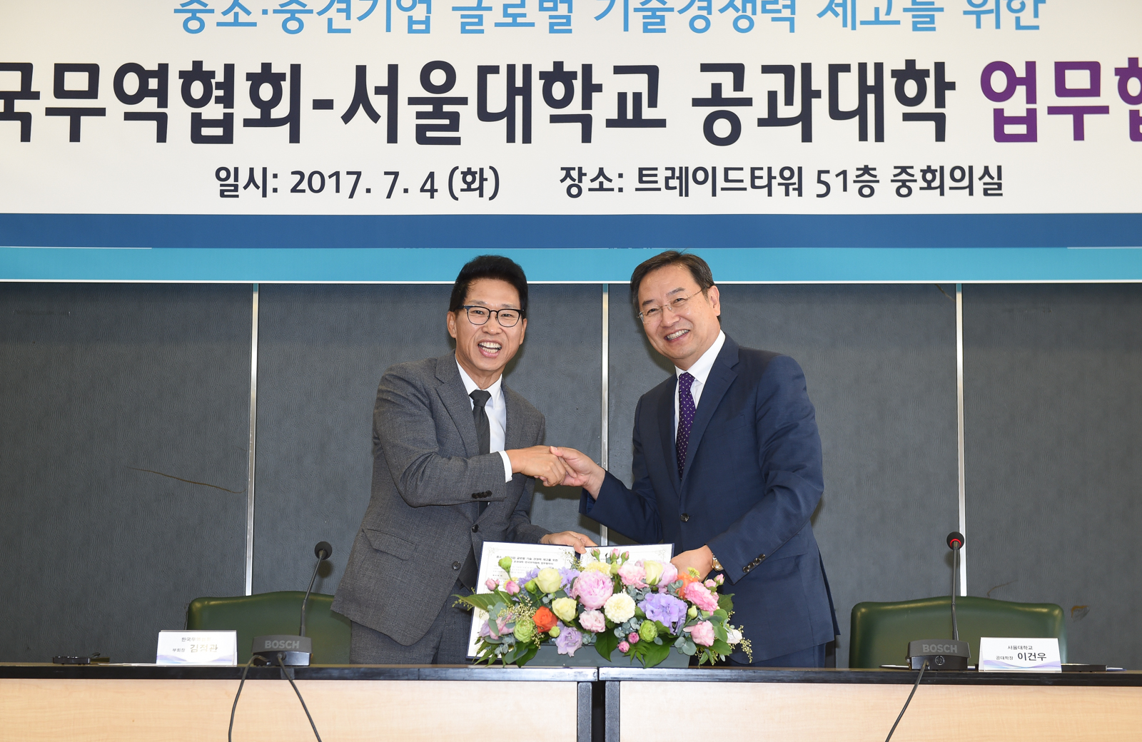 무역협회와 서울대 공대는 4일 서울 삼성동 무역센터 트레이드 타워에서 '중소·중견기업 글로벌 기술경쟁력 제고를 위한 업무협약(MOU)'을 체결했다.