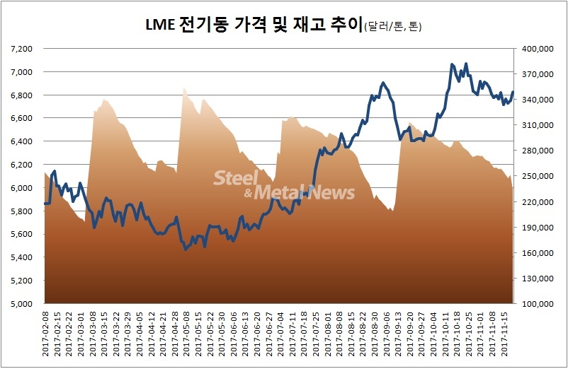 이와 함께 중국의 전기동 수급지표는 11월 이후 시장이 타이트해지고 있음을 나타고 있다. 실제로 상하이 전기동 최근 프리미엄은 10월 말과 비교해 6.7% 상승했다.