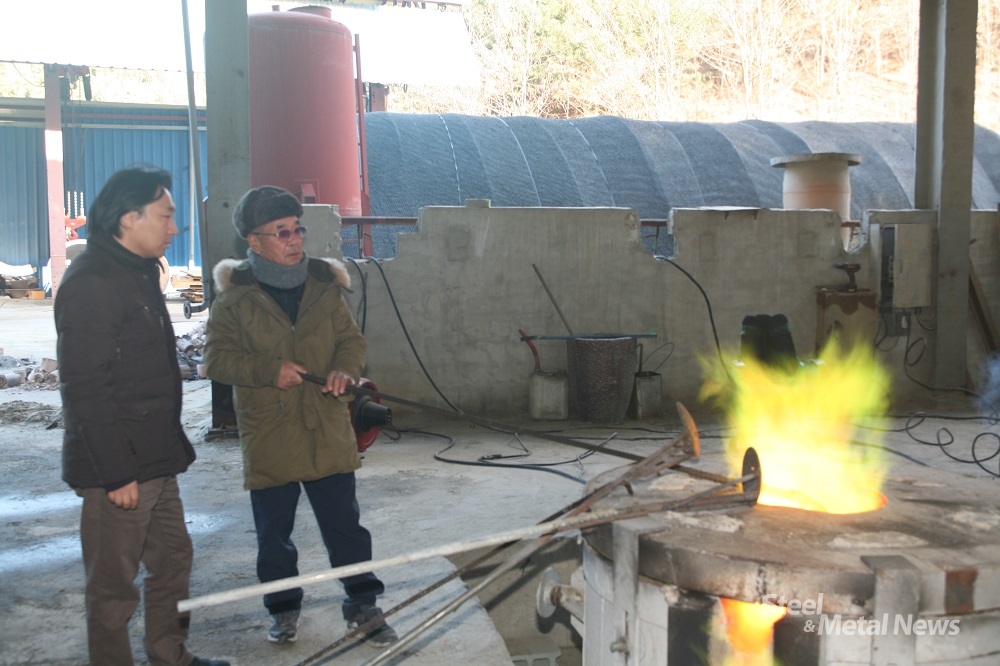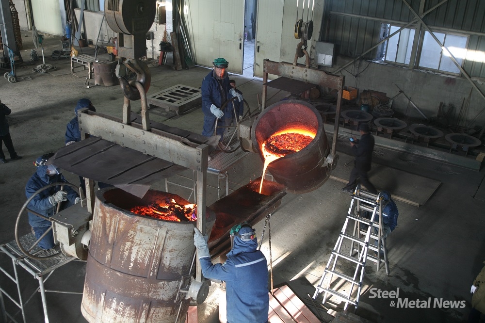 ▲ 성종사 직원들이 쇳물을 붓고 있는 모습. (사진=뿌리뉴스)