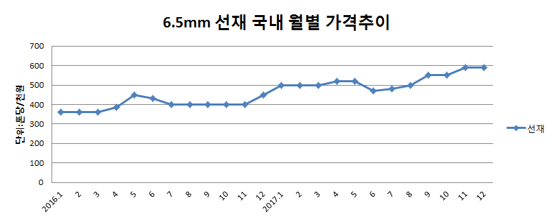 포스코는 지난 1월과 10월 톤당 각각 12만원, 5만원의 가격을 올렸으며, 2018년 1월 다시 톤당 5만원의 가격 인상을 검토중에 있다.