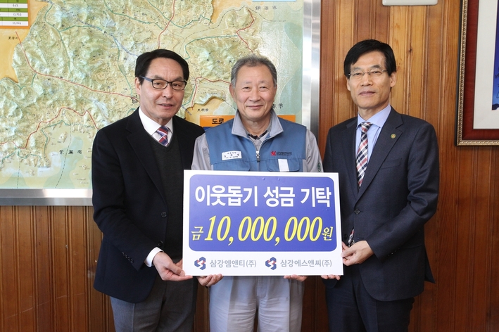 삼강엠앤티는 매년 연말 이웃돕기 성금을 기탁해오고 있고 올해도 어김없이 이웃돕기 성금을 기탁해 지역사회에 귀감이 되고 있다.