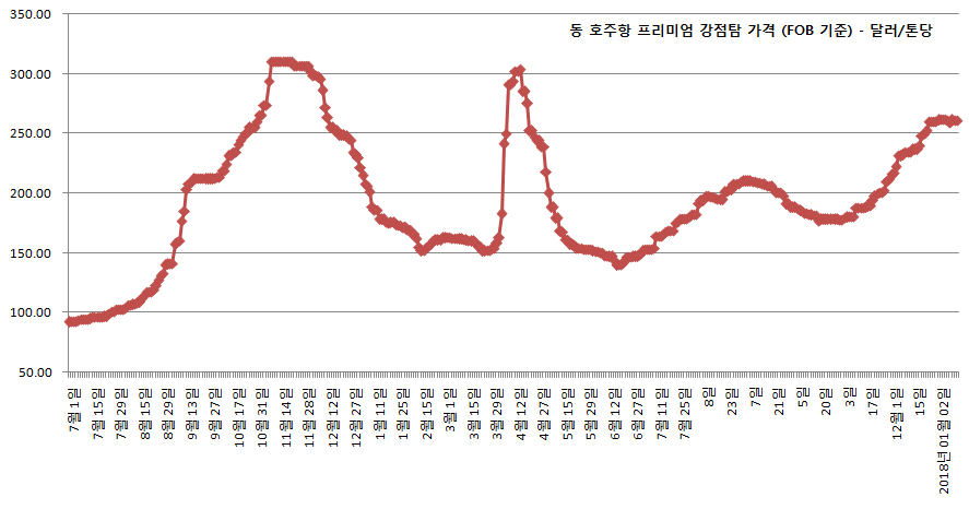 그동안 지속돼온 가격 상승은 중국을 비롯한 인도, 동남아지역에서의 구매심리가 강하게 작용하면서 가격 상승세를 이끌었다. 최근 구매심리는 다소 약화된 모습과 함께 가격을 지속적으로 이끌어갈 수 있는 상승 동력이 약화되고 있다는 분석이 나오고 있다.
