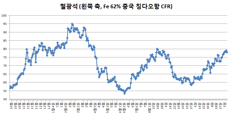 철광석과 원료탄 가격이 점차적으로 조정 국면에 진입할 것이라는 예측이 지배적이다.