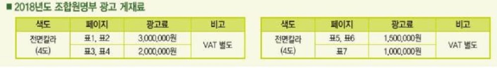금형조합, '2018년도 조합원 명부' 광고 신청 접수