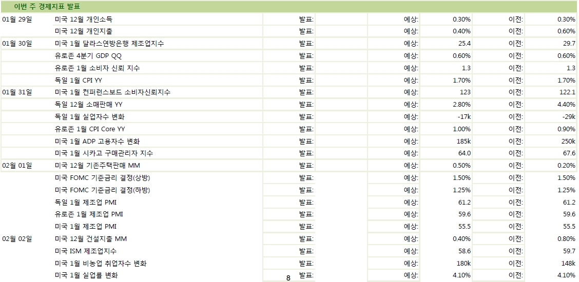 이번 주 경제 지표 발표…2월1일 美 FOMC 기준금리 결정 등