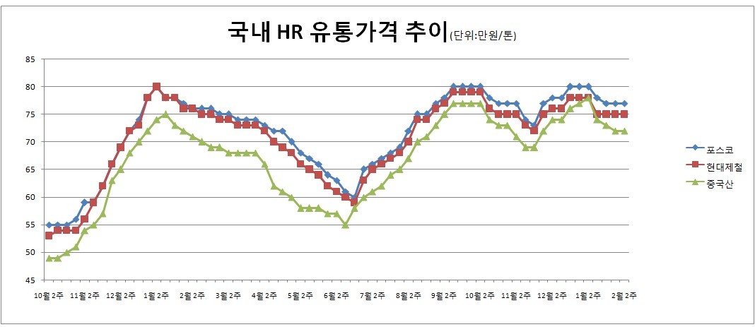 열연강판(HR) 유통가격은 큰 변동이 나타나지 않고 있는 가운데 설 연휴를 앞두고 판매가 살아나면서 향후 수요 증가 기대감이 증가하고 있다.