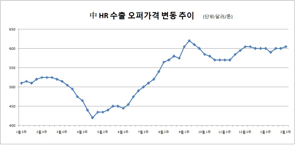 중국 내에서는 춘절 연휴 이후 가격 상승 기대감이 나타나고 있다. 통상적으로 연휴 이후로는 가격이 올랐기 때문이다. 그러나 업계 내에서는 중국의 수출 오퍼가격은 춘절 이후로도 큰 변동이 나타나지 않을 것으로 내다보고 있다.