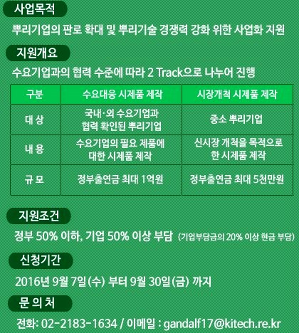 문의는 뿌린센터(전화 02-2183-1634, 이메일 grandalf17@kitech.re.kr)로 하면된다.