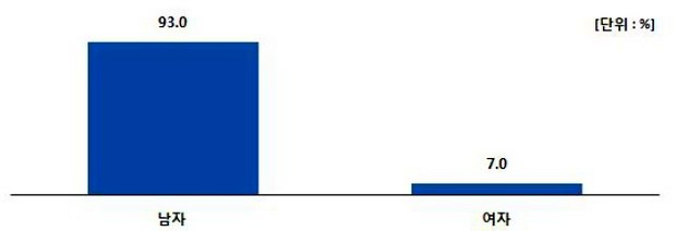 이를 업종별로 보면 대부분의 업종에서 남자가 대표자인 경우가 90% 이상으로 파악됐으나, 표면처리(6327개사) 업종은 여성 대표 비율이 9.8%(621개사)로 상대적으로 높았다.