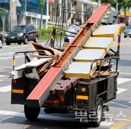 국내 한 고물 수집상이 이륜차에 고철 등을 실고가고 있는 것으로, 본 기사와 큰 연관은 없다.