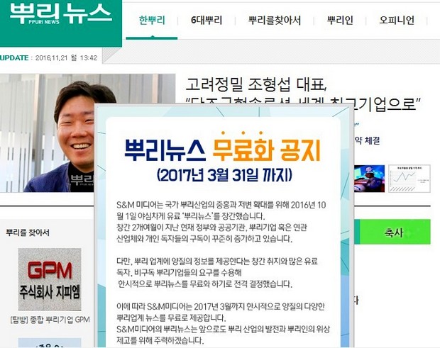 이어 S&M 미디어는 같은 달 하순 고양시 한국국제전시장(킨텍스)에서 펼쳐진 ‘2016 국제 철강·금속산업대전’에서 창간행사를 갖고, 익월부터 뿌리뉴스의 유료 서비스를 진행했다.