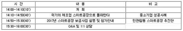 서울 여의도 중소기중앙회에서 열리는 이번 행사에서는 ▲내년 스마트공장 보급사업 설명과 ‘위기의 제조업 스마트공장으로 돌파한다’를 주제로 스마트공장을 성공적으로 도입한 ▲중소기업의 우수 사례가 각각 소개된다.