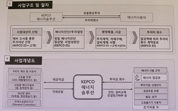 이 사업은 켑코 에너지솔루션이 시설투자 비용을 전액 부담하고 여기서 발생하는 에너지절감 비용를 투자비용으로 회수하는 사업이다.