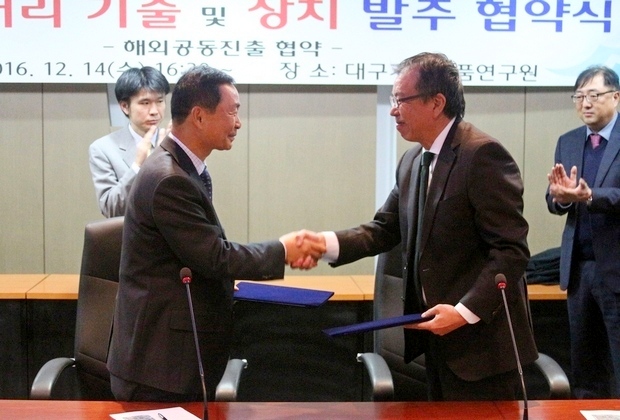 대구 열·표면처리 최첨단 기업인 미래써모텍(대표이사 배진범)이 14일 일본 다이도 스틸의 자회사인 다이도 DMS와 MRAIP-1100의 100만달러(12억원) 어치 1차 수출 협약 등을 체결했다.