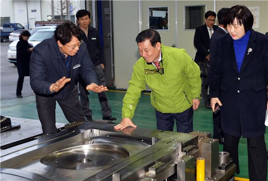 윤장현 광주시장은 지난 12일 세일금형을 직접 방문해 제조 현장을 둘러보고 명품강소기업에 선정된 것을 다시 한 번 축하했다. / 사진: 광주시
