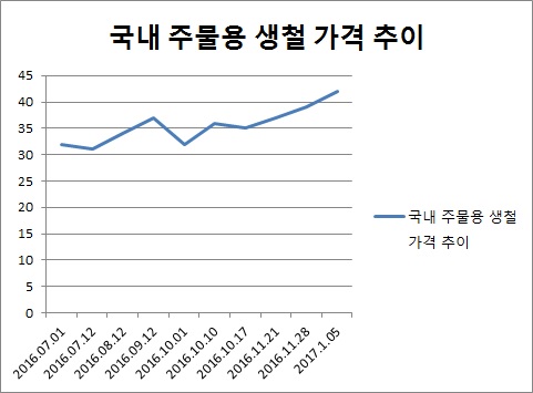 주물용 생철 공동구매가격이 한 달여 만에 다시 상승했다.