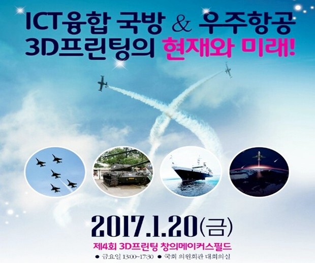3D프린팅서비스협회는 제 4회 3D프린팅 창의메이커스 필드로 마련된 이번 행사는 국회 국방위원회 김중로, 산업통상자원위원회 정운천, 미래창조과학방송통신위원회 송희경 의원들의 공동으로 주최한다며 16일 이같이 밝혔다.
