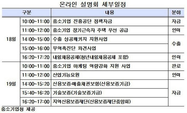 중기청 18~19일 ‘온라인설명회’ 개최