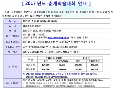 이에 따라 학회는 3월 17일까지 학회 사이트(//www.kstp.or.kr)에서 발표신청을 받고, 같은 달 24일까지 사이트를 통해 발표 원고를 접수한다.