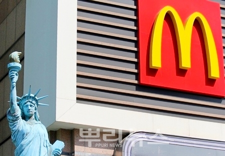 이라고 할수 있는 자유여신상과 현지 패스트푸드 브랜드 맥도널드의 로고. 정수남 기자
