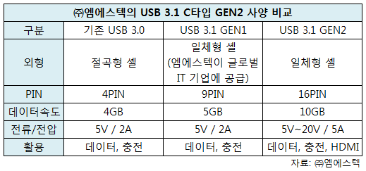 초정밀 전자부품 제조사 ㈜엠에스텍은 오는 28일 일체형 단자(셸)를 갖춘 USB 3.1 C타입을 출시한다고 21일 밝혔다.