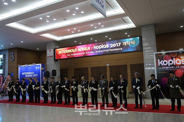 개막을 알리는 테이프 커팅식에는 정만기 산업통상자원부 차관과 박순황 한국금형공업협동조합 이사장 등 20여명의 내빈들이 참석했다.