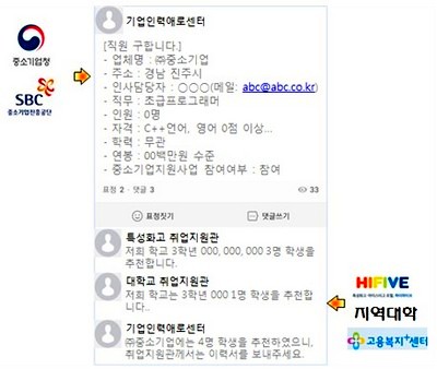 센터는 맞춤형 채용서비스를 도입, 소셜네트워크서비스(SNS,네이버 밴드)를 통해 기업의 인력수요가 발생할 경우 인재양성기관 담당자의 추천을 실시간으로 진행한다.
