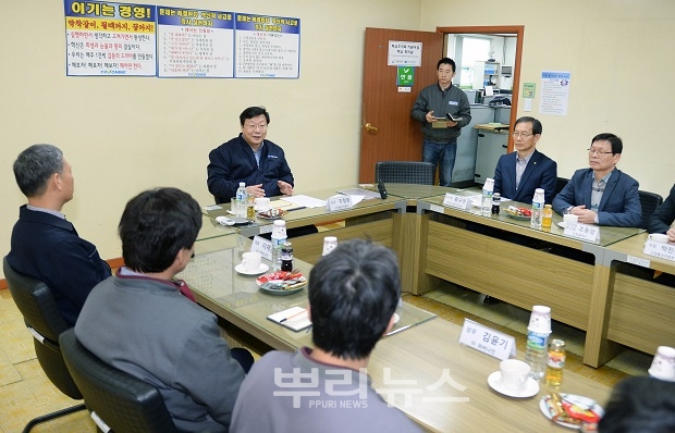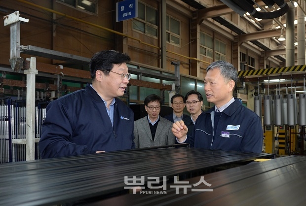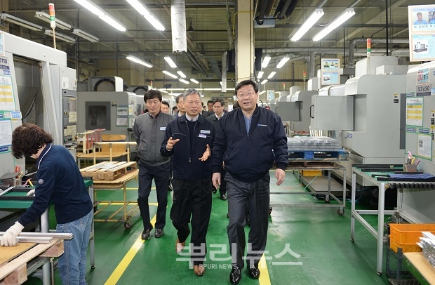 이날 주형환 장관은 조동암 인천시 경제부시장, 황규연 산업단지공단 이사장과 함께 방문하여, 이제훈 대표이사, 오종철 사장의 안내로 TV프레임 및 스탠드 제조현장을 둘러본 후 구내식당에서 오찬을 함께 했다.