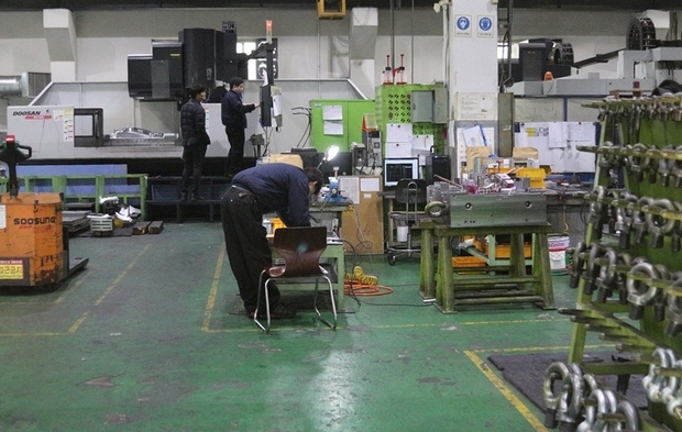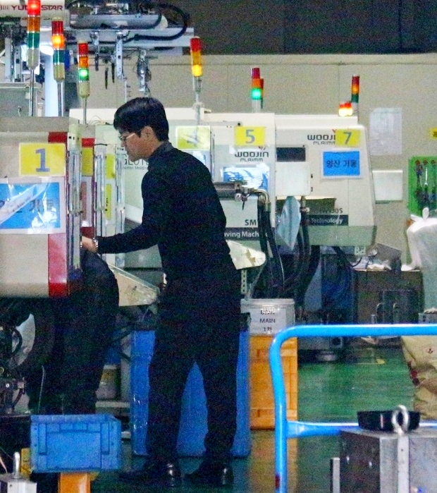 사출금형 업체인 H사는 생산라인에 모두 7대를, 플라스틱 사출금형 업체인 C사는 10대의 자동화기기를 두고 있다. 이들 라인에는 각각 남자 1명과 여자 2명의 생산직원이 근무하고 있다. 정수남 기자