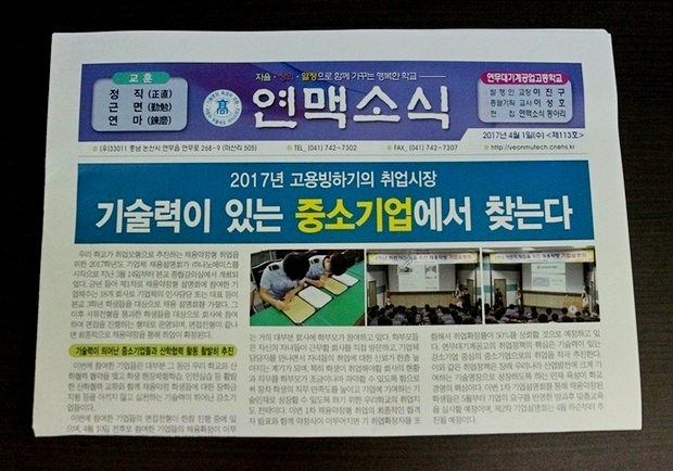 충남 논산에 위치한 마이스터고교인 연무대기계공업고등학교(교장 이진구)가 올해 두번째 ‘연맥소식(통권 113호)’을 발행했다고 20일 밝혔다.