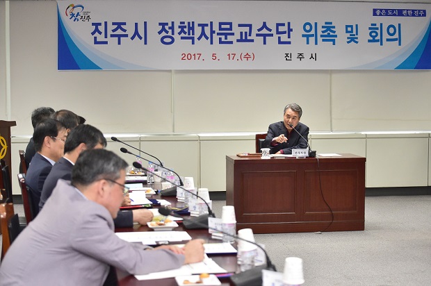 뿌리산업을 신성장동력으로 준비 중인 진주시가 17일 오후 4시 30분 시청 5층 상황실에서 창의적인 시책개발과 시정 자문기능을 활성화하기 위해 2017년도 정책자문교수단 위촉식과 함께 정기회의를 개최했다.