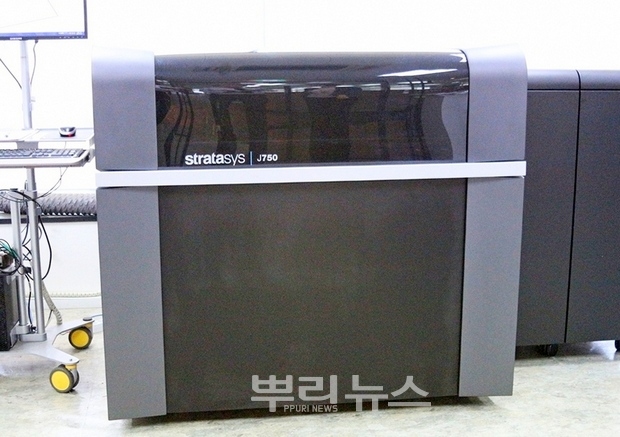 스트라타시스 J750은 규격이 1960㎜×2868㎜×2102㎜이며, 조형물의 크기는 1,000㎜×800㎜×500㎜다.